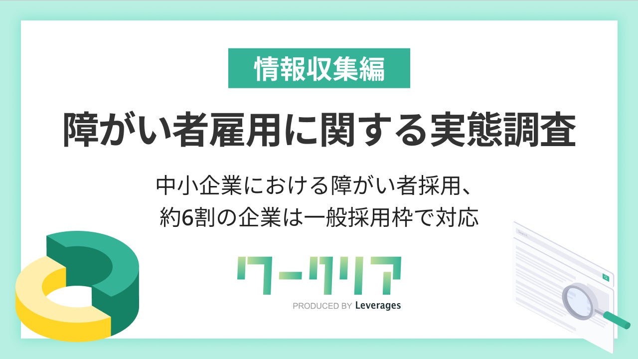 レバレジーズ株式会社が運営する、障がい者就労支援サービス「ワークリア」は、障がい者雇用に関わる中小企業の採用担当者196名を対象に、障がい者雇用の実態調査(情報収集編)を実施しました。