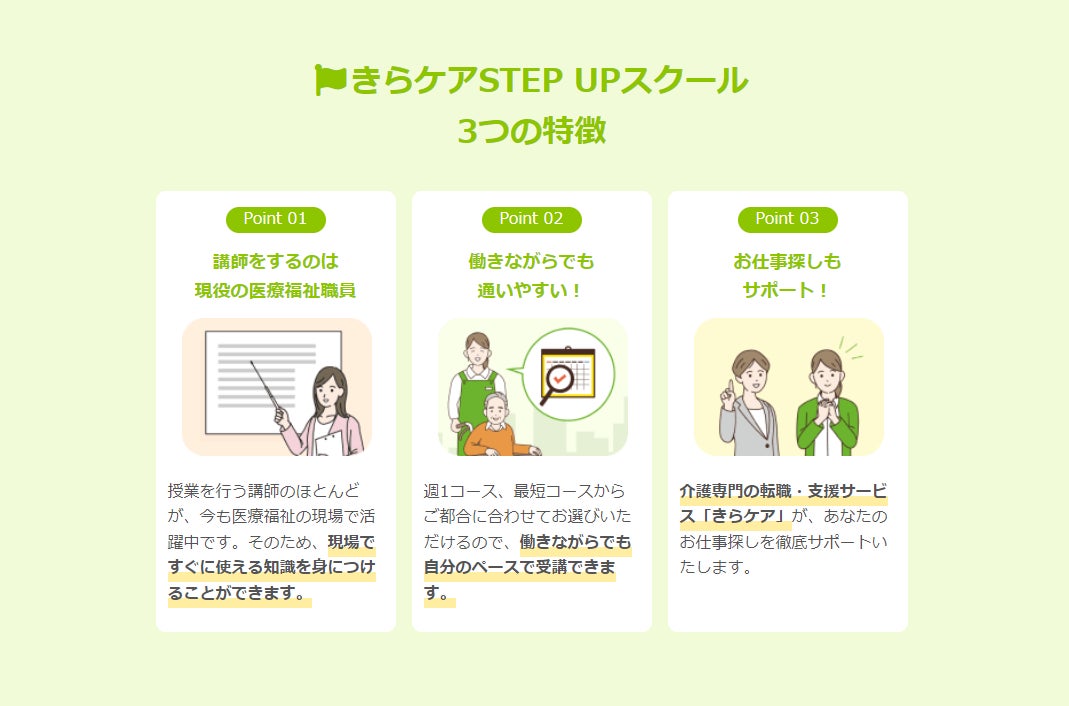 「きらケアSTEP UPスクール」は介護業界への就職を目指す方をサポートする介護資格スクールとして2020年1月にスタートしました。