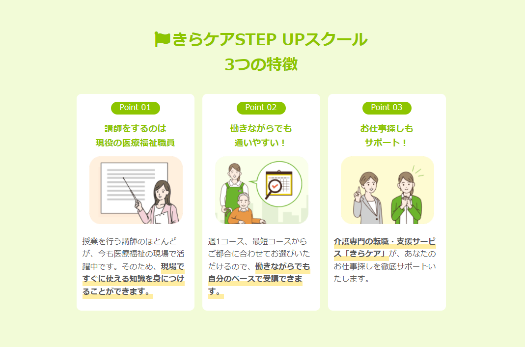 「きらケアSTEP UPスクール」は介護業界への就職を目指す方をサポートする介護資格スクールとして2020年1月にスタートしました。