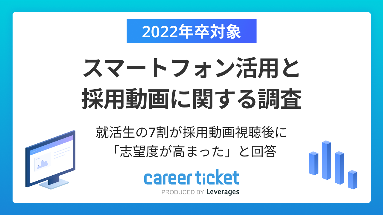 レバレジーズ株式会社が運営する新卒向け就職エージェント「career ticket (キャリアチケット)」は就職活動生300名を対象に「就職活動におけるスマートフォンの活用と採用動画視聴に関するアンケート調査」を実施しました。