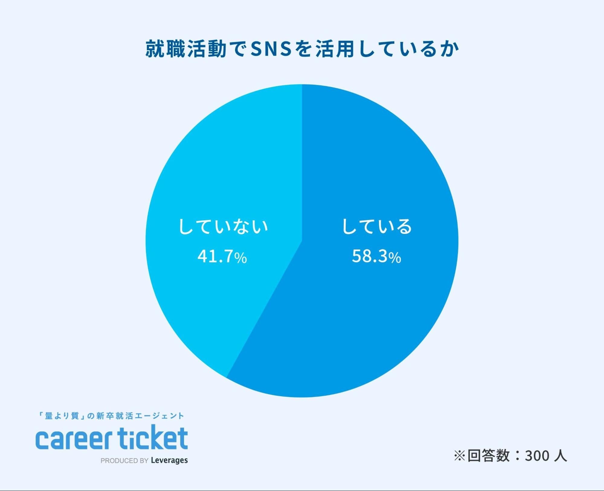 現在就活中、もしくはすでに就活を終えている大学4年生の男女300人に、就職活動でSNSを活用したことがあるか尋ねると、「はい」と回答した学生は半数以上という結果になりました。