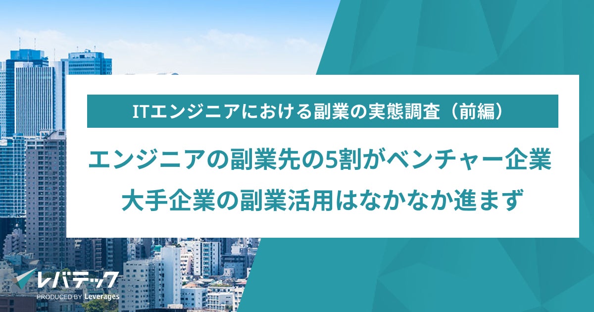 レバテック株式会社が運営するITエンジニア・クリエイター専門エージェント レバテックは、副業をしているエンジニア300名を対象に、副業の実態調査を実施しました。今回は前編・中編・後編に分けての発表となり、本記事では前編として、「副業の基本情報編」についてお届けいたします。