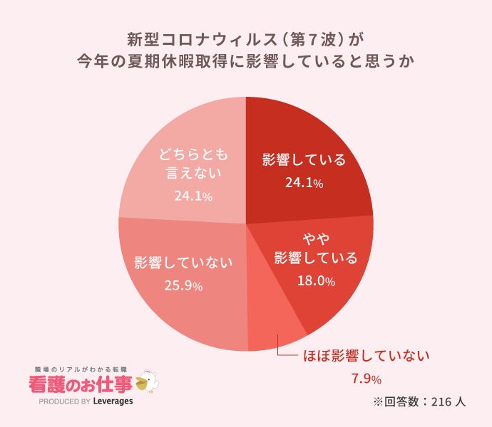 4.4割の看護師が、新型コロナ感染拡大(第7波)は夏期休暇取得に「影響があった」