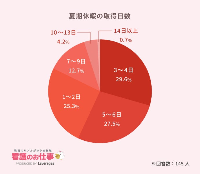 2.看護師の夏期休暇の取得日数は「3~4日」が29.6%と最多