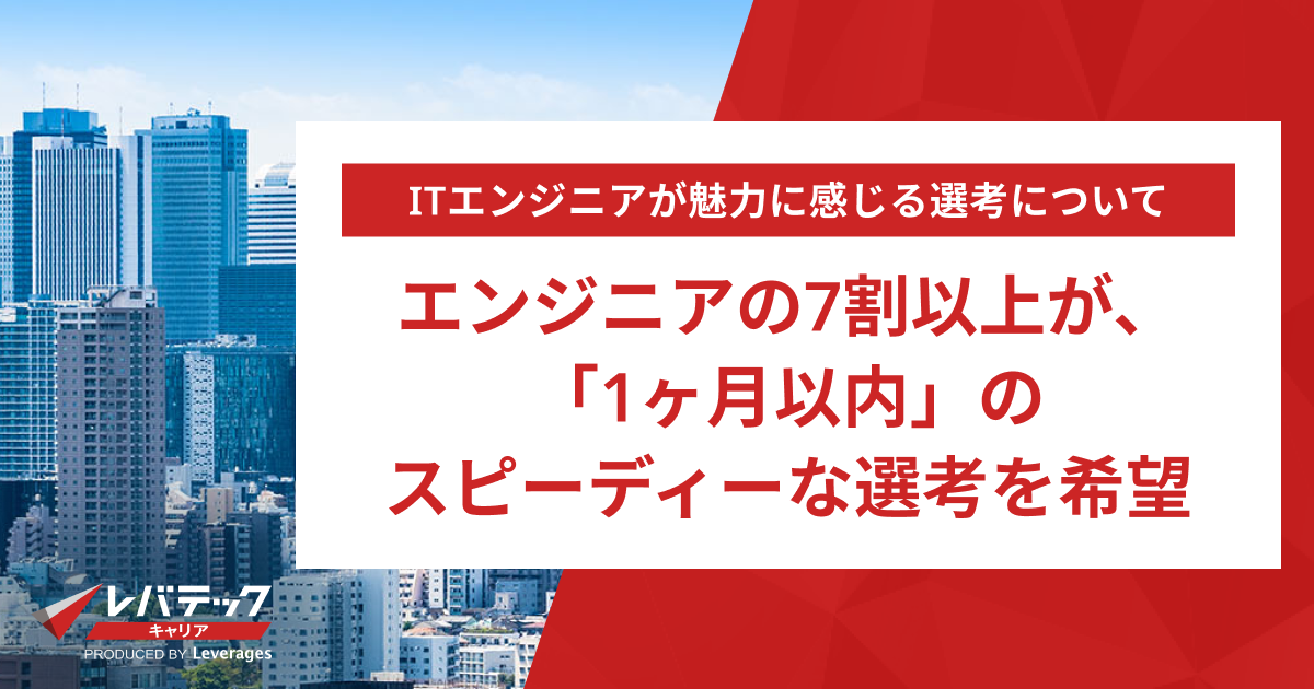 レバテック株式会社が運営するITエンジニア・クリエイター専門エージェント、レバテックキャリア( https://career.levtech.jp/ )は、社会人エンジニア300名を対象に、「ITエンジニアが魅力を感じる選考」について調査を実施いたしました。