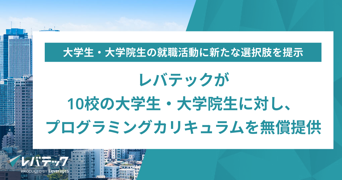 レバテックが10校の大学生・大学院生にプログラミングカリキュラムを無償提供