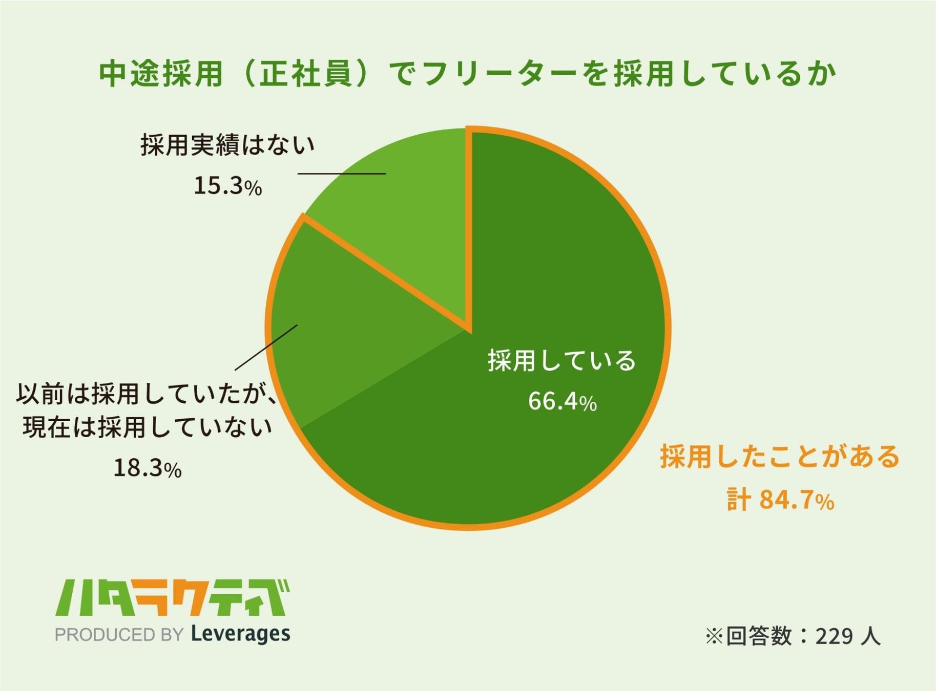 レバレジーズ株式会社が運営するフリーター・既卒・第二新卒向け就職支援サービス ハタラクティブ( https://hataractive.jp/ )は、中途採用を行っている企業の採用担当者300人を対象に、フリーター※の採用意欲に関する実態調査を実施しました。本調査は前編・後編に分かれた発表となり、今回は前編をお届けします。後編は、1月上旬に配信予定です。