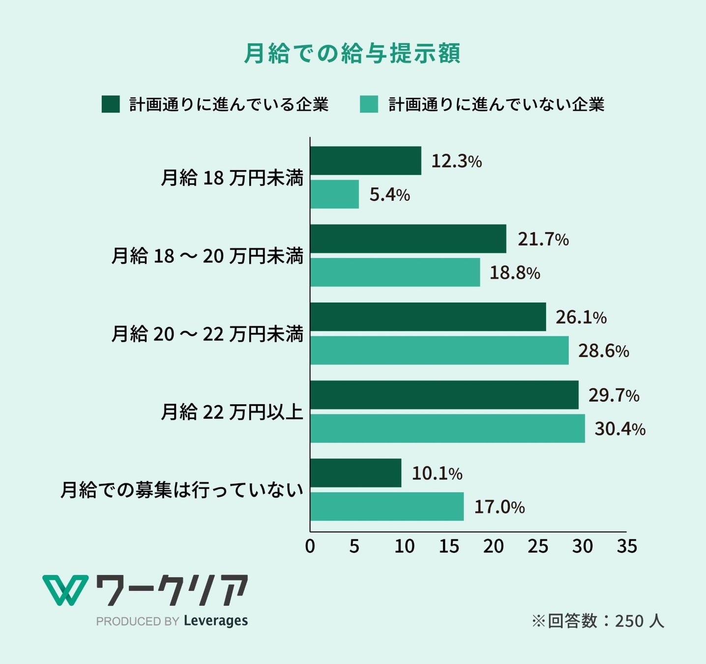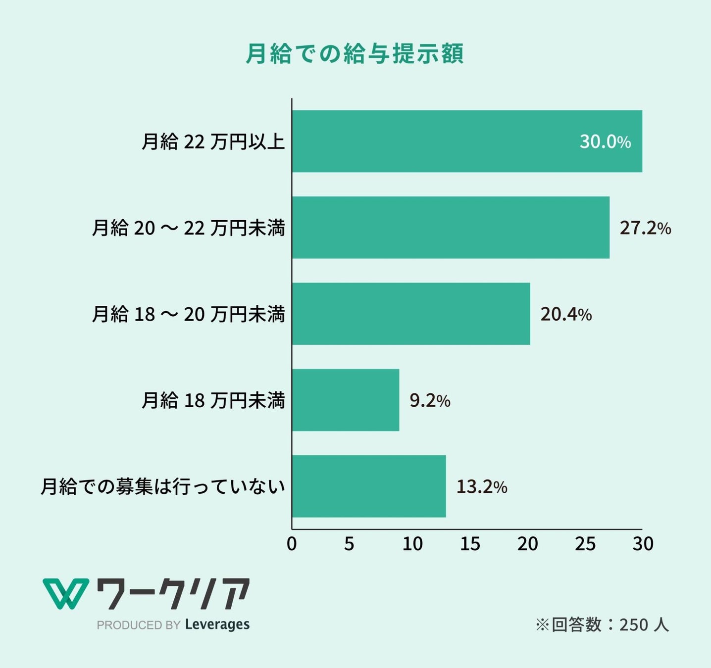 IT企業250社のうち、3割(75社)が「月給22万円以上」で給与提示をしていると回答しました。