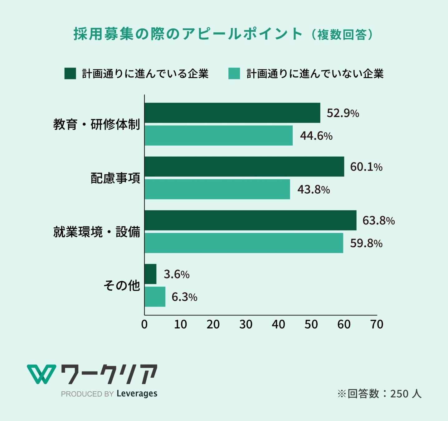 1.採用が計画通りに進んでいる企業は、募集時に「配慮事項」をアピール