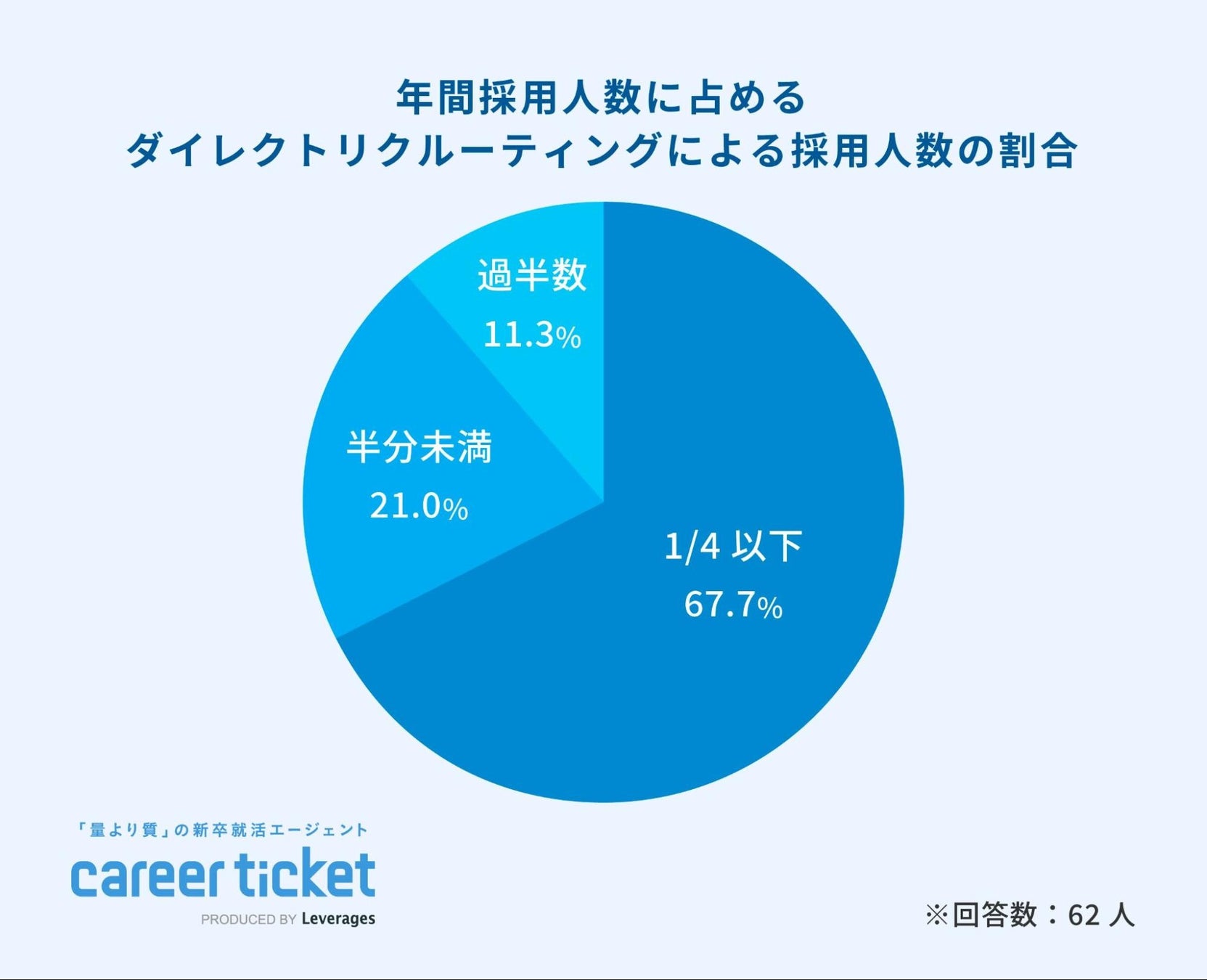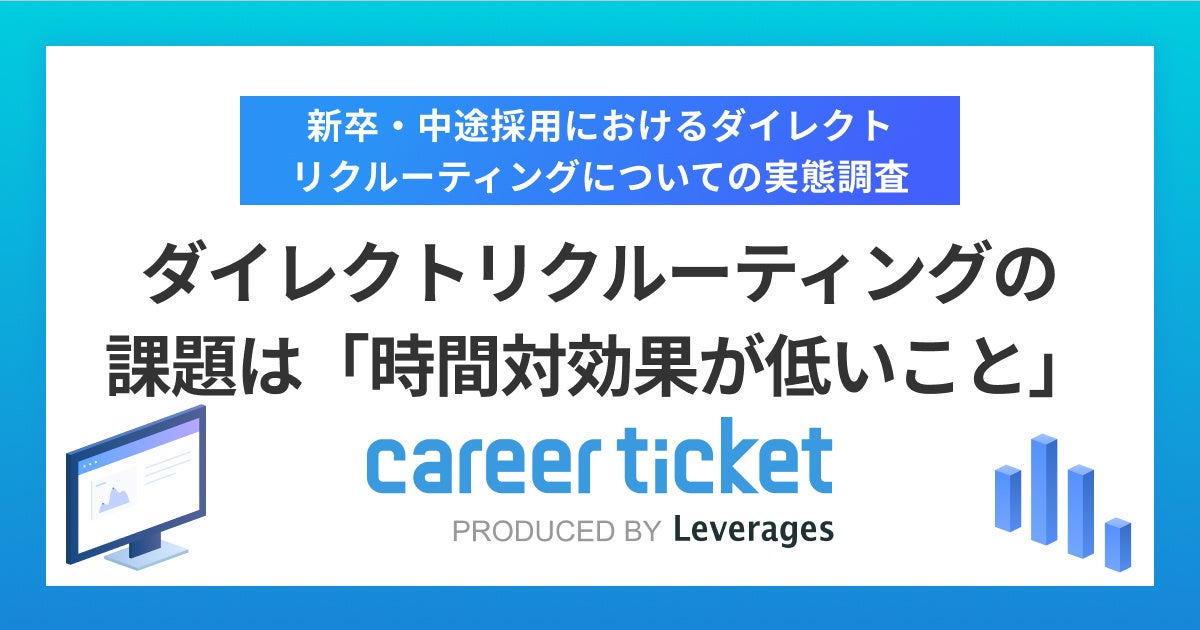 レバレジーズ株式会社が運営する新卒学生向けのキャリア支援サービス「career ticket (キャリアチケット)」は、ダイレクトリクルーティングを利用しているもしくは過去に利用したことがある企業の、新卒採用もしくは中途採用を行っている採用担当者123名を対象に、ダイレクトリクルーティング※に関する実態調査を実施しました。