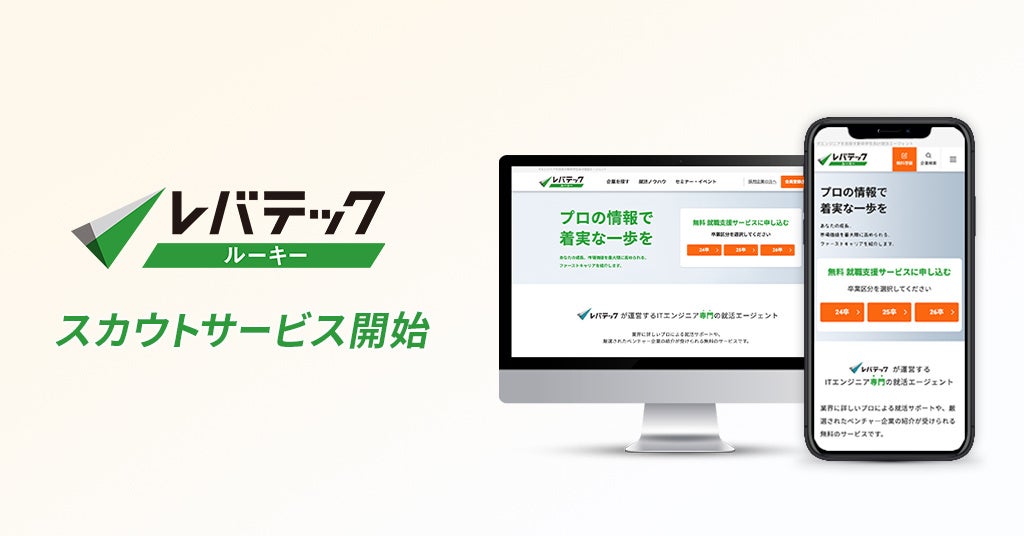 レバテック株式会社が運営する、ITエンジニア専門新卒向け就職支援エージェント、レバテックルーキー( https://rookie.levtech.jp/ )は、新卒エンジニア向けのスカウトサービス「レバテックルーキースカウトサービス」を6月26日(月)にリリースします。レバテックが保有する豊富なデータベースを活用し、企業の採用計画を支援する新卒エンジニア採用に特化したスカウトサービスです。