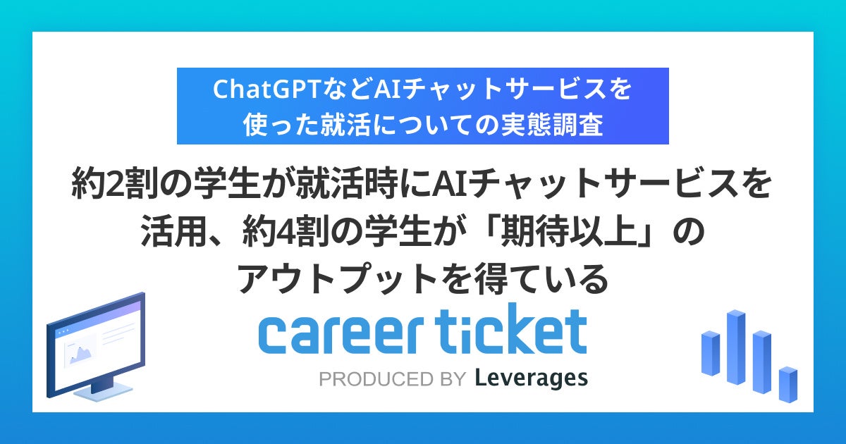 レバレジーズ株式会社が運営する新卒向け就職エージェント「career ticket (キャリアチケット)」は、キャリアチケットに登録している大学生352名を対象に、OpenAI社が提供するChatGPTなどAIチャットサービスを使った就活の実態を調査しました。