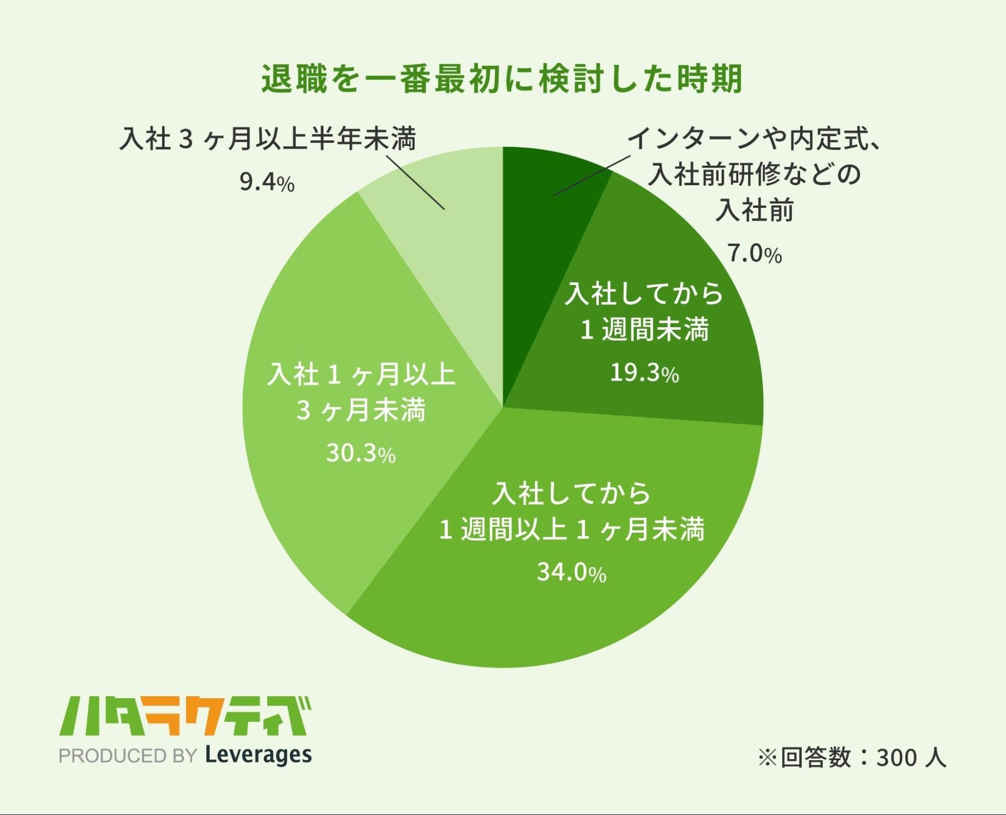 レバレジーズ株式会社が運営するフリーター・既卒・第二新卒向け就職支援サービス ハタラクティブ( https://hataractive.jp/ )は、2019年~2023年に大学を卒業し、新卒で入社した会社を半年未満で退職した経験がある男女300名を対象に、短期離職の実態を調査しました。