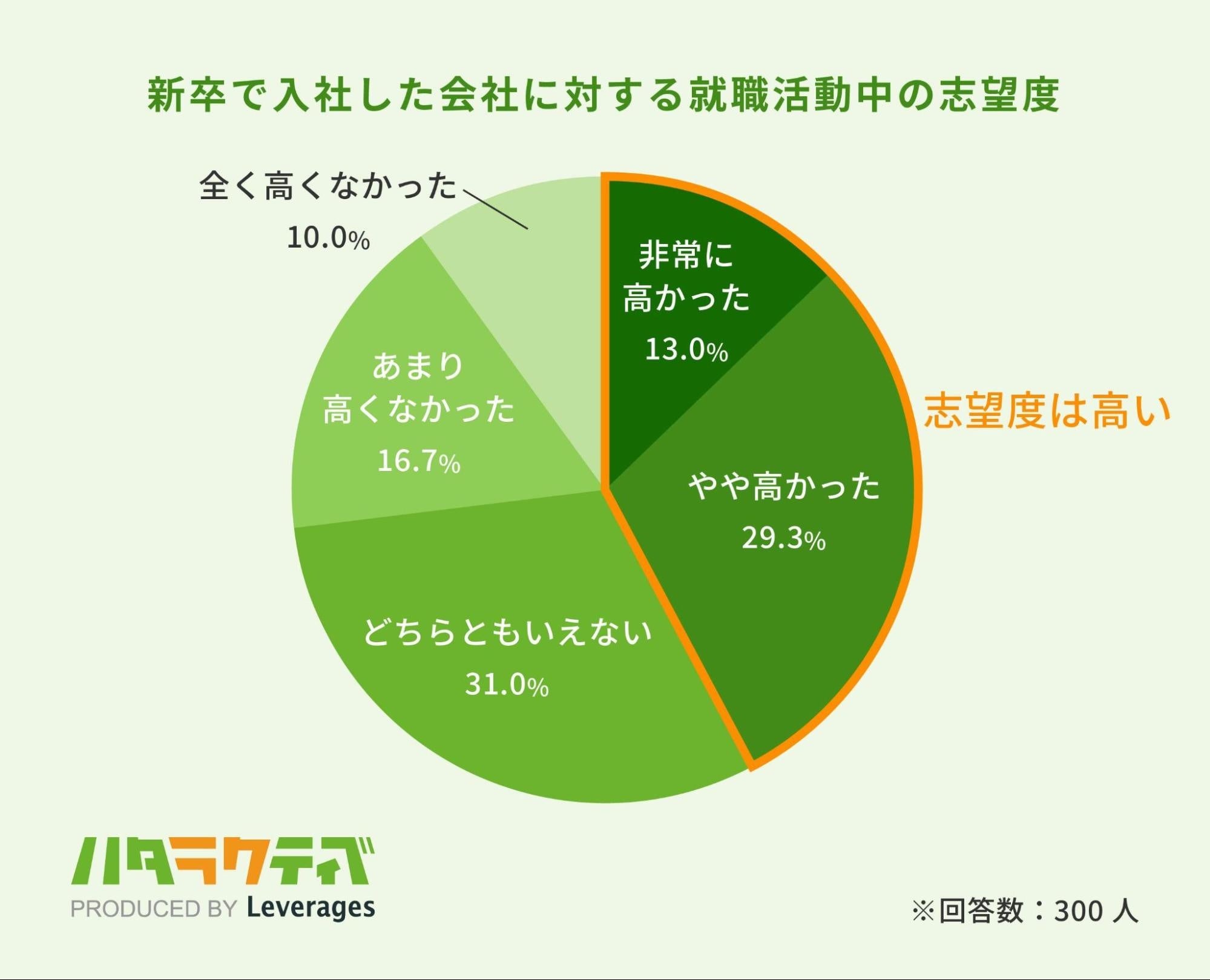 「新卒で入社した会社に対する志望度」について、約4割は「志望度は高かった(42.3%)」と回答しました。入社する会社に対する期待値が高すぎると、会社に対して違和感やギャップを感じた際の落差が大きくなるため、短期離職に繋がることが考えられます。