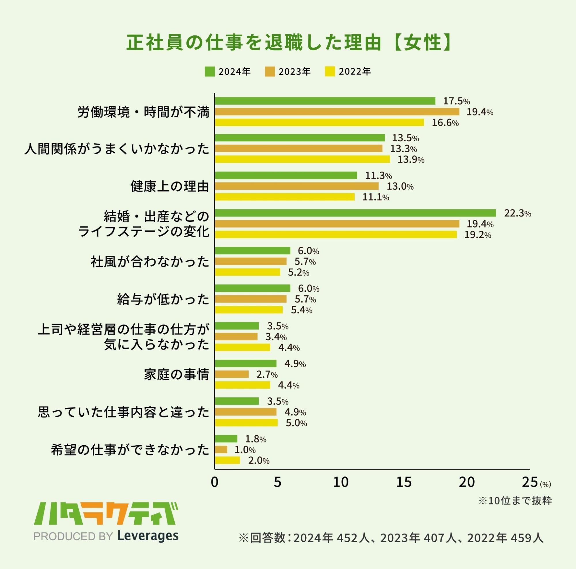 - 20代の女性正社員がフリーターになったきっかけ、約5人に1人は「結婚・出産」が理由で2年連続上昇傾向