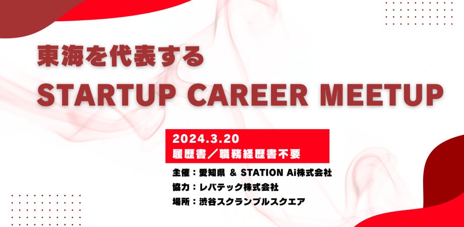 「日本を、IT先進国に。」をビジョンに掲げるレバテック株式会社 ( https://levtech.jp/ ) は、愛知県とStation Ai株式会社が協同で主催する、スタートアップ採用支援イベントへの協力が決定したことをお知らせいたします。レバテックがミッションとする「IT人材と企業を増やし、伸ばし、繋げる」の一環として、愛知県の取り組みを支援します。