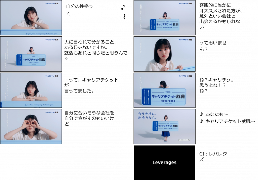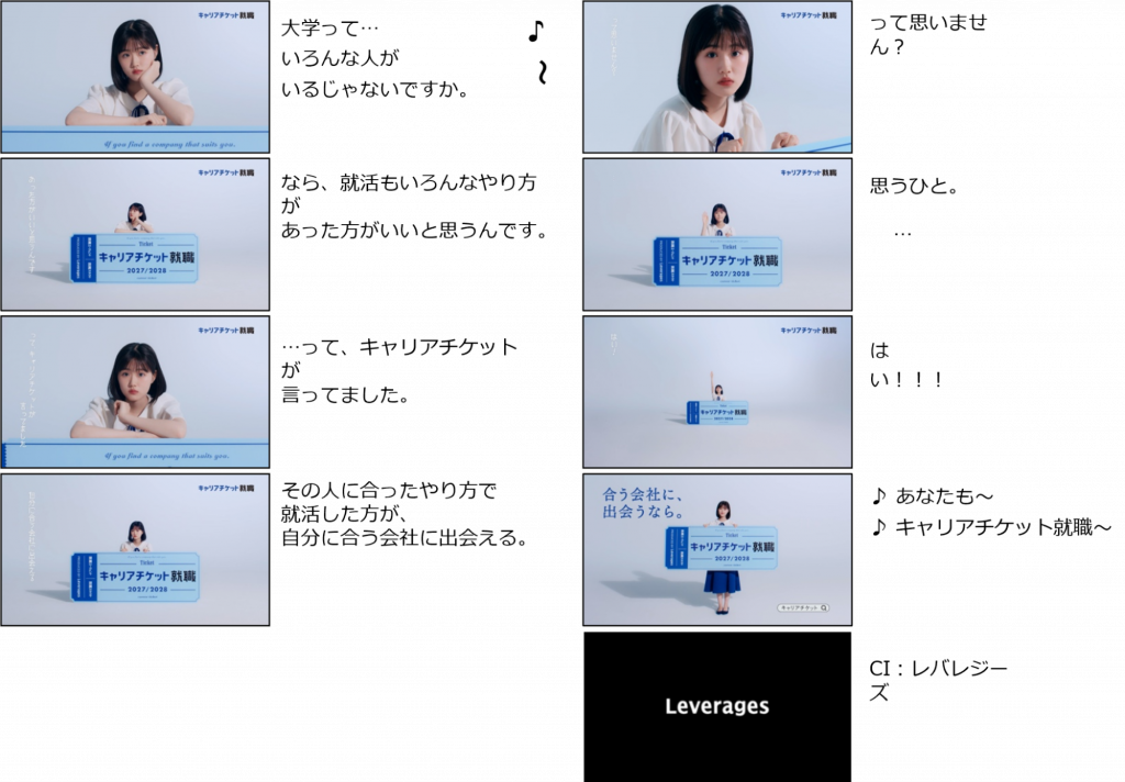 レバレジーズ株式会社が運営する新卒学生向け就職支援サービス「キャリアチケット就職(https://careerticket.jp)」は、新CM『頼れるチケット・キャリチケの歌』篇を、2025年12月21日(日)より放映開始いたします。
